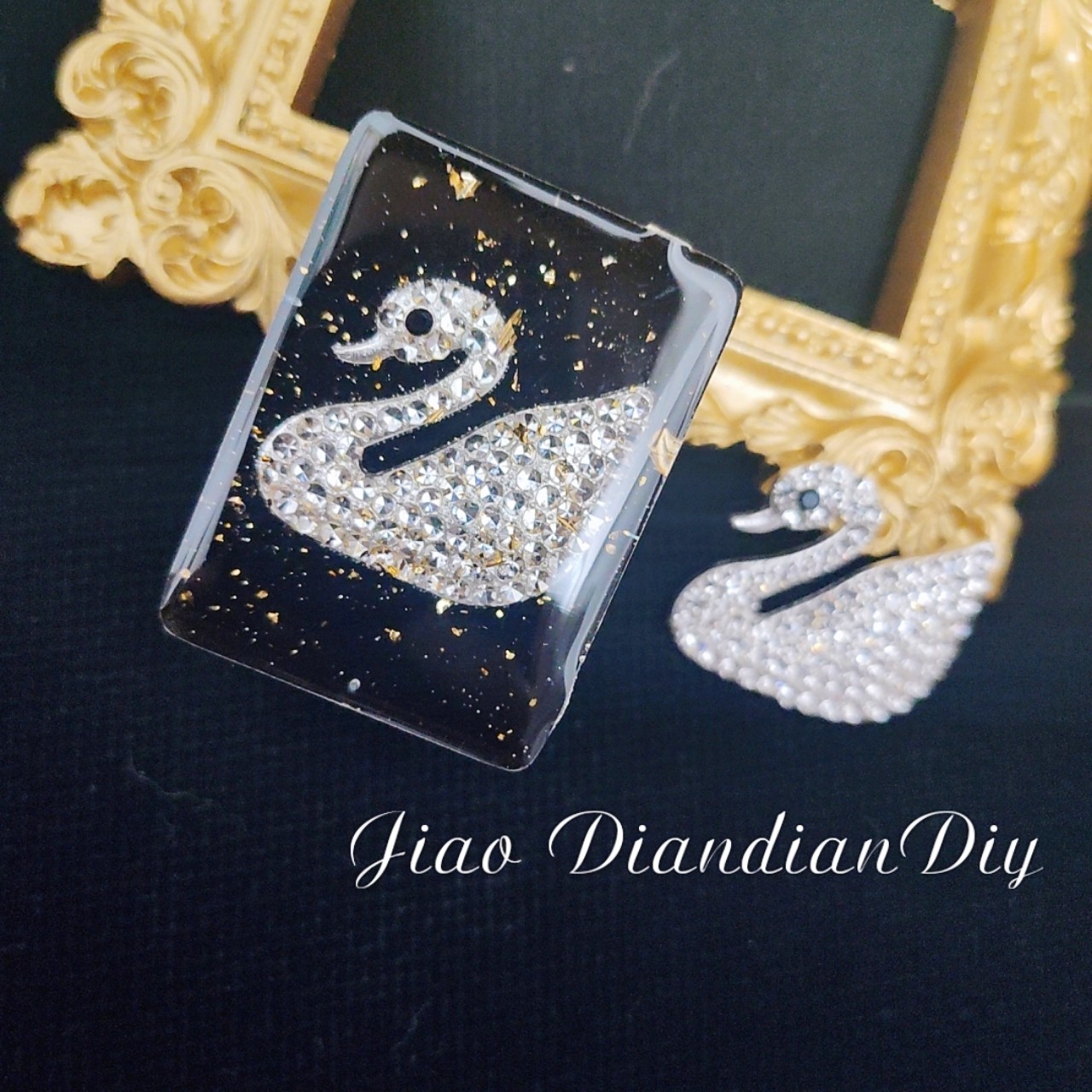 滴胶天鹅配件金箔首饰饰品材料包耳钉素材不掉色钻石闪亮胸针热门设计联盟服务商