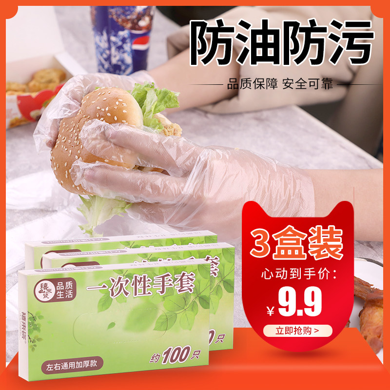 一次性手套食品餐饮加厚龙虾厨房家用透明塑料薄膜手套染发PE盒装热门设计联盟服务商