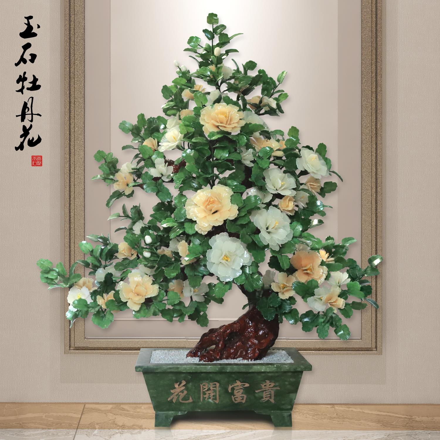 .天然玉石高档牡丹花大型玉盆景客厅会所酒店家居装饰品工艺品摆热门设计联盟服务商