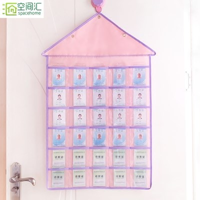 透明插卡袋门后布艺收纳袋幼儿识字卡收纳晨检挂袋名片袋储物袋热门设计联盟服务商