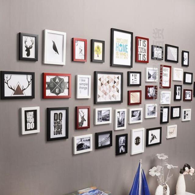 自粘木相框墙面挂式婚纱照相框挂墙组合套装简约婚照清新客厅照片热门设计联盟服务商