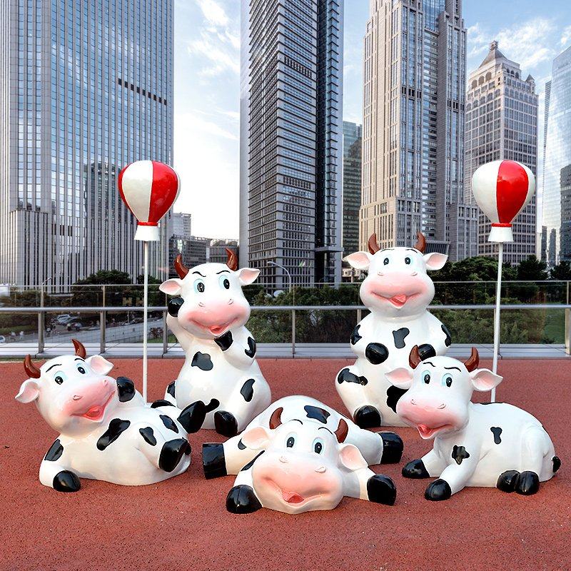 户外卡通动物奶牛玻璃钢雕塑农场幼儿园庭院草坪美陈落地装饰摆件热门设计联盟服务商