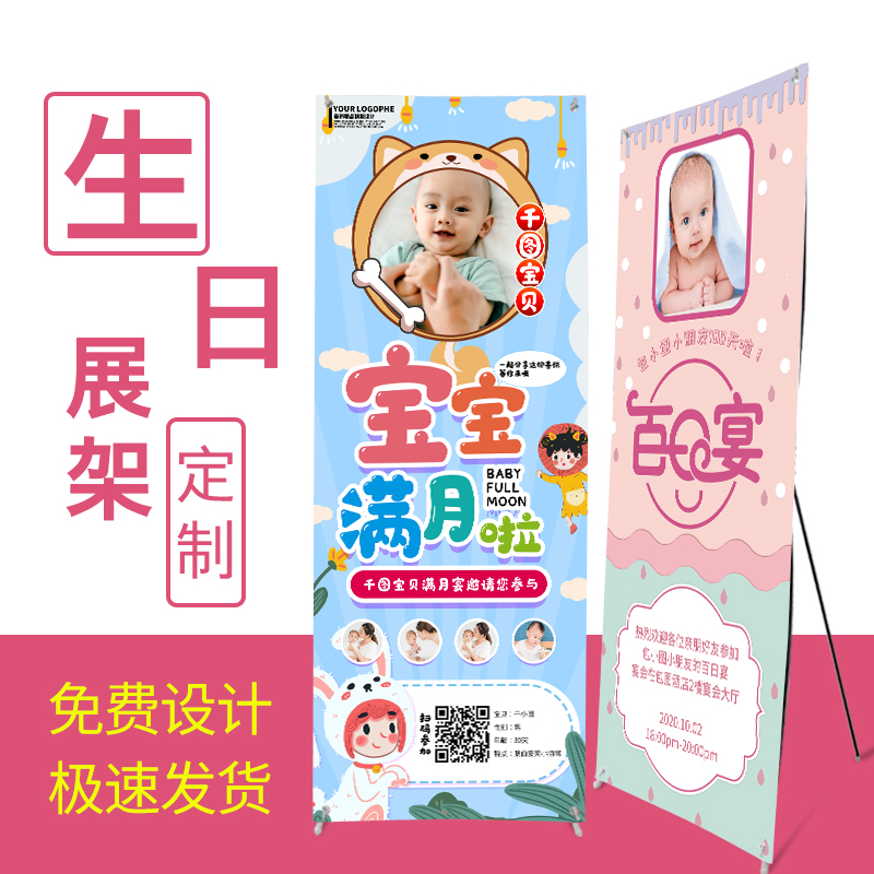 宝宝生日百日宴海报满月展架支架周岁易拉宝门型广告海报定制设计热门设计联盟服务商