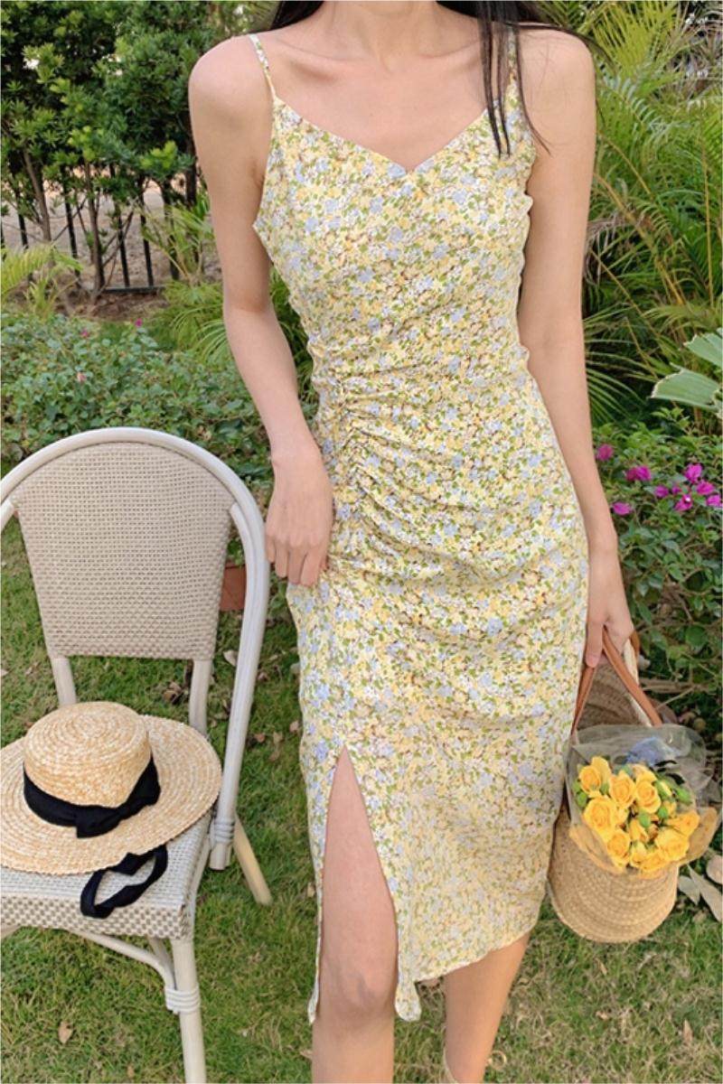 西双版纳度假裙法式碎花吊带裙设计感小众外穿开叉连衣裙女夏长裙热门设计联盟服务商