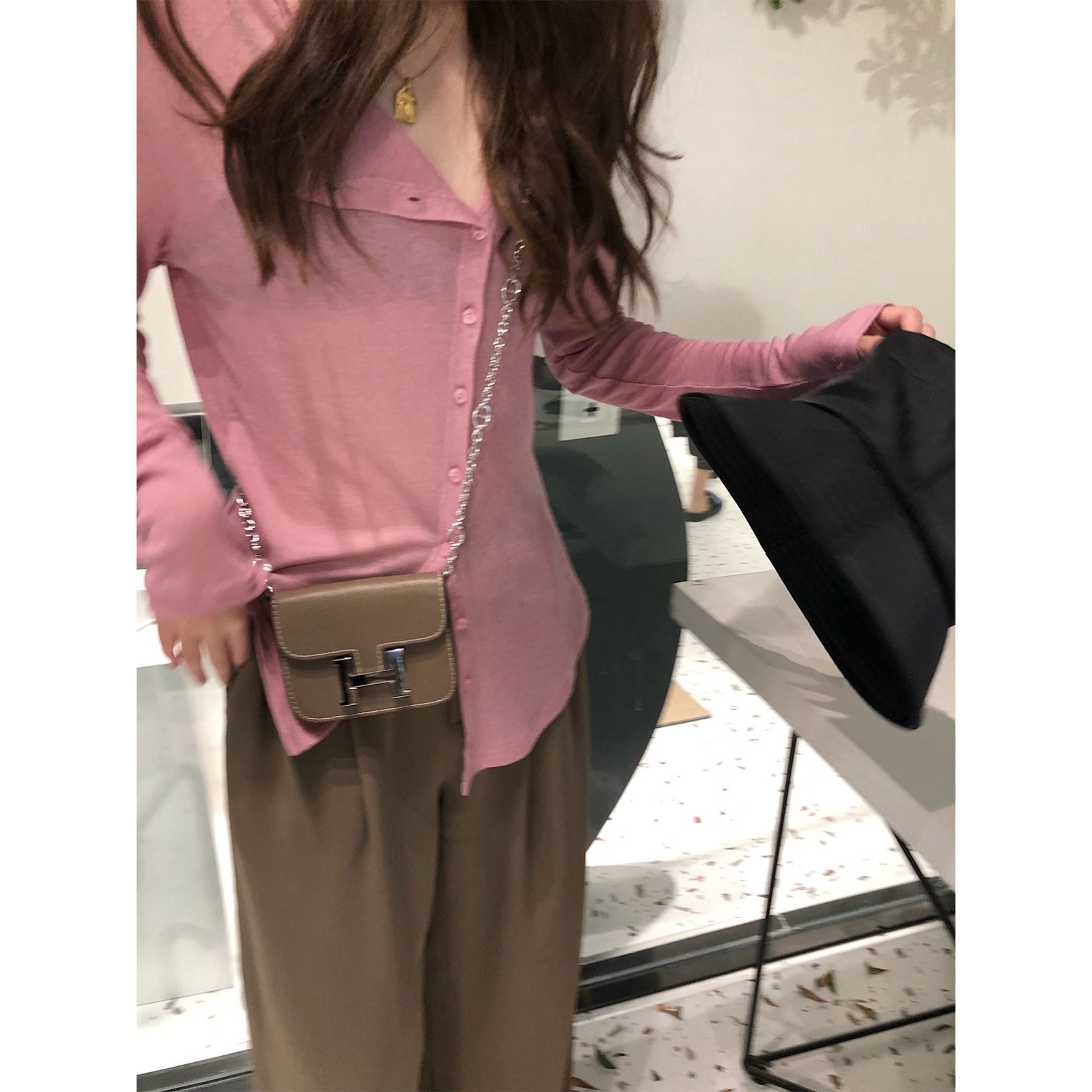 草莓跳草莓伏特加~巨显瘦设计感斜纽扣针织衫女软糯微透毛衣开衫热门设计联盟服务商