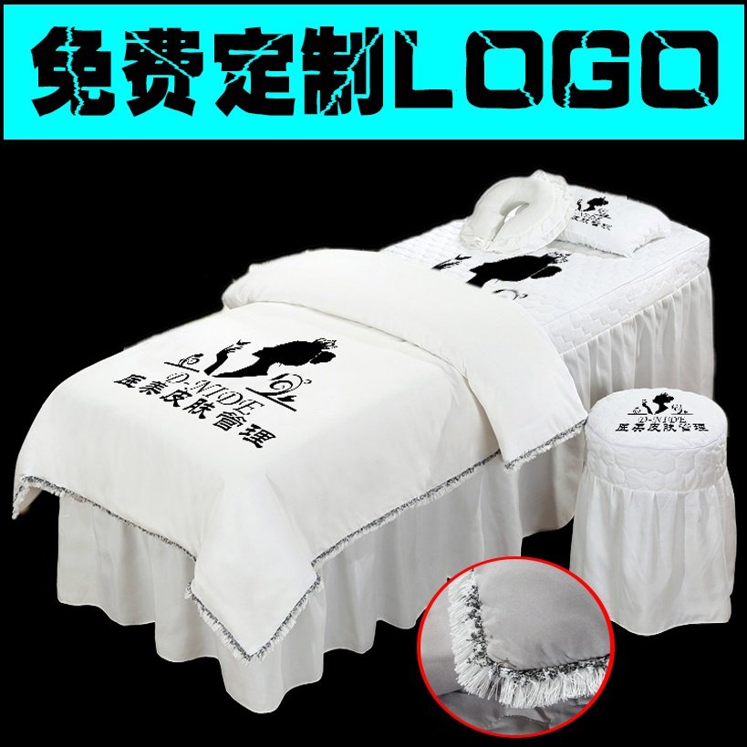 美容床罩四件套定制LOGO印制店名图标按摩洗头美容院床品床套床单热门设计联盟服务商
