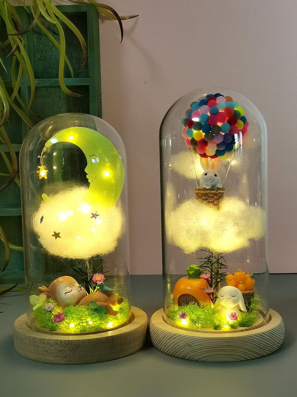小王子独角兽小鹿摆件装饰品玻璃罩云朵小夜灯走心女神节生日礼。热门设计联盟服务商