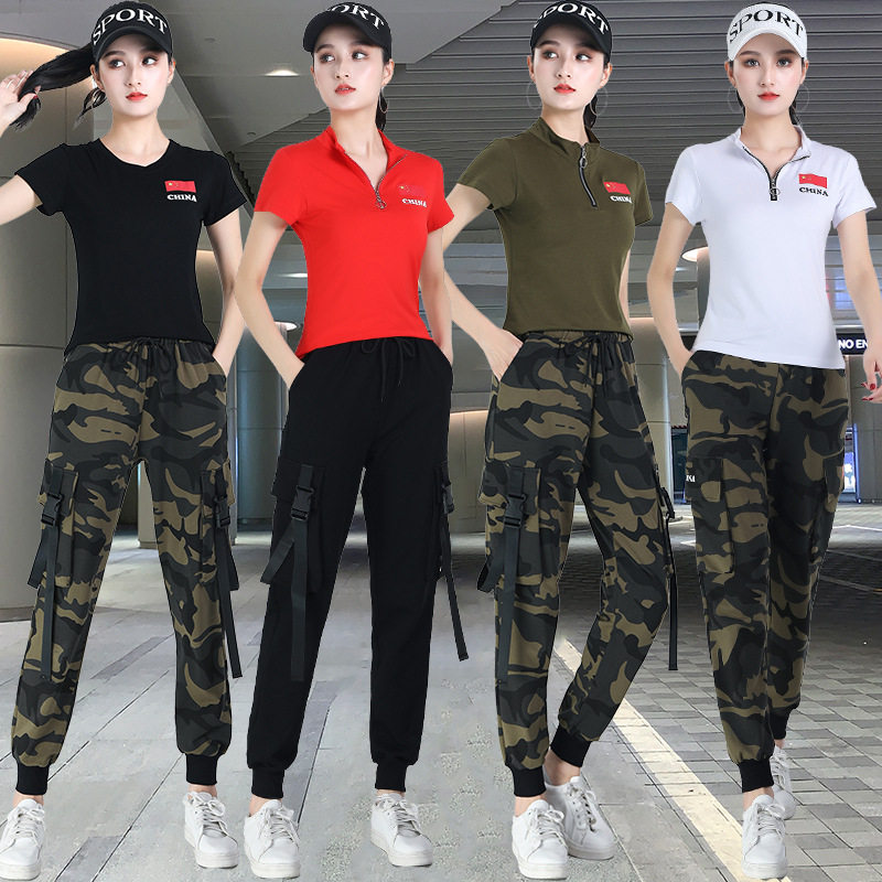 曳步舞新款女棉拉链套装夏季短长袖时尚工装裤运动服广场舞跳舞热门设计联盟服务商