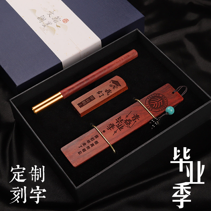 红木质黑色签字笔宝珠笔商务男高档学生专用名字姓名印章篆刻古风书签文创设计礼盒订制毕业纪念品热门设计联盟服务商
