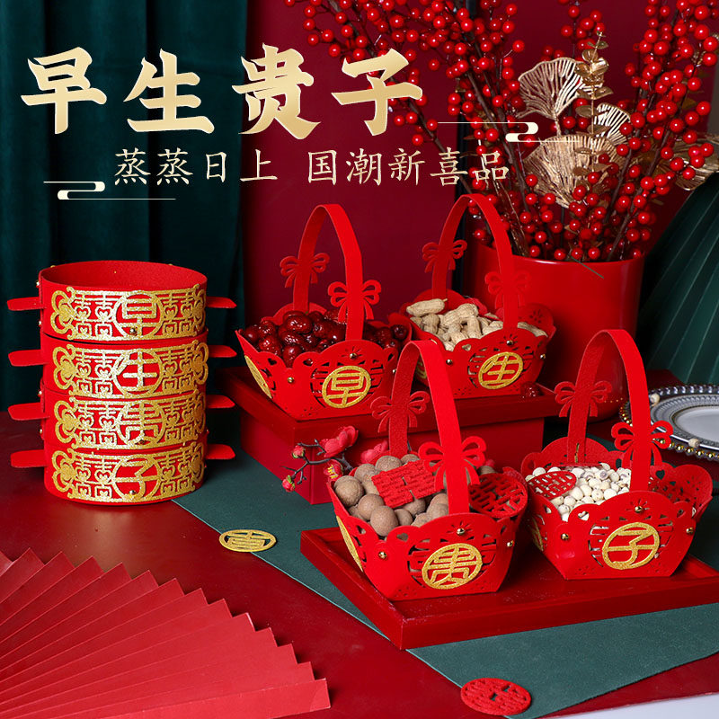婚房装饰布置早生贵子新房压床摆件提篮I蒸笼婚礼干果模板结婚用热门设计联盟服务商