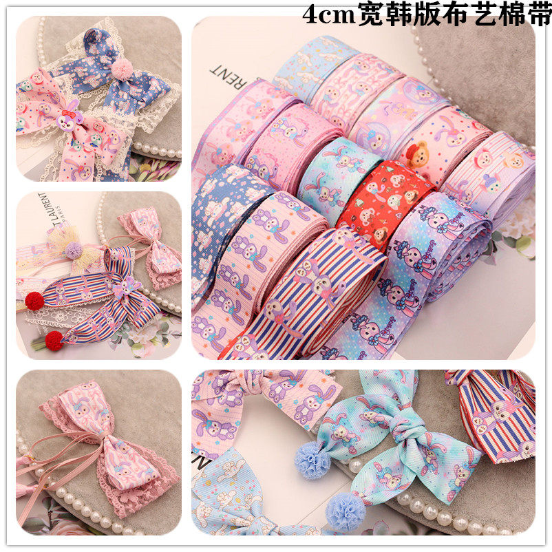4cm宽韩版布艺棉带卡通星黛露雪梨熊印花棉质丝带配件热门设计联盟服务商