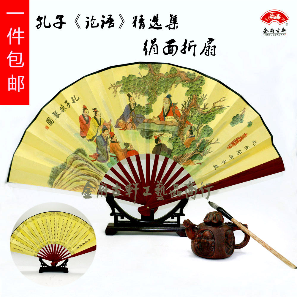 仿古工艺扇 创意折扇 孔子文化精选 绢面男子手持扇 特色手工艺热门设计联盟服务商