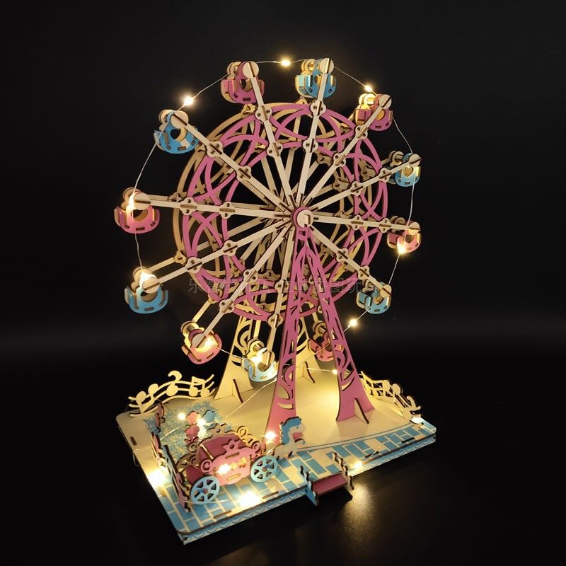 木制3d立体拼图旋转木马摩天轮游乐园高难度益智模型木质玩具摆件热门设计联盟服务商