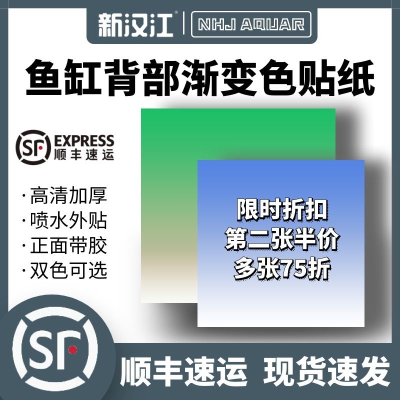 新汉江鱼缸背景贴纸水草背景纸蓝白渐变背景画绿白渐变贴画自粘热门设计联盟服务商