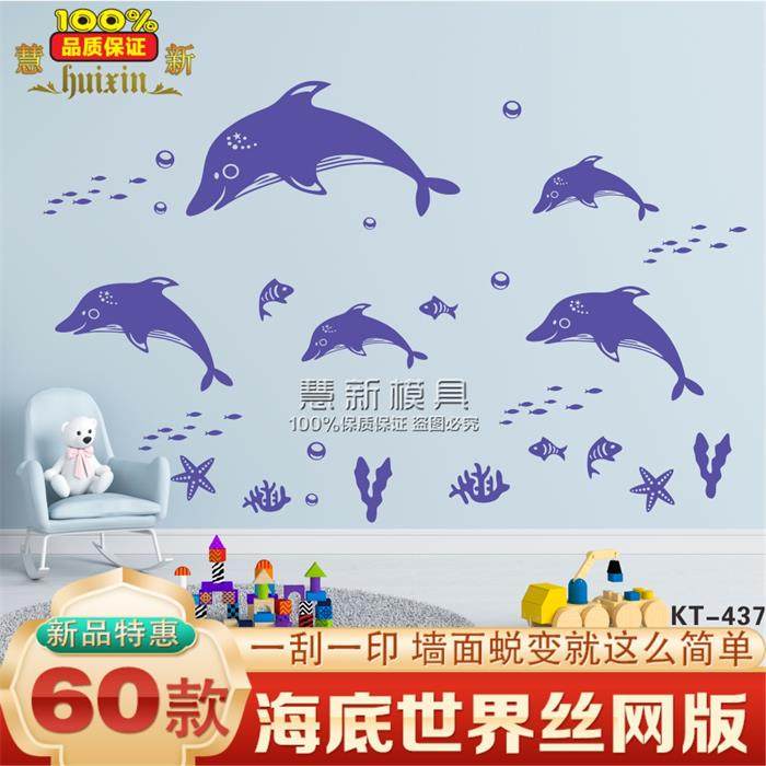 丝网印花模具艺术漆硅藻泥印花版男孩房卡通海底世界鱼海豚KT-199热门设计联盟服务商